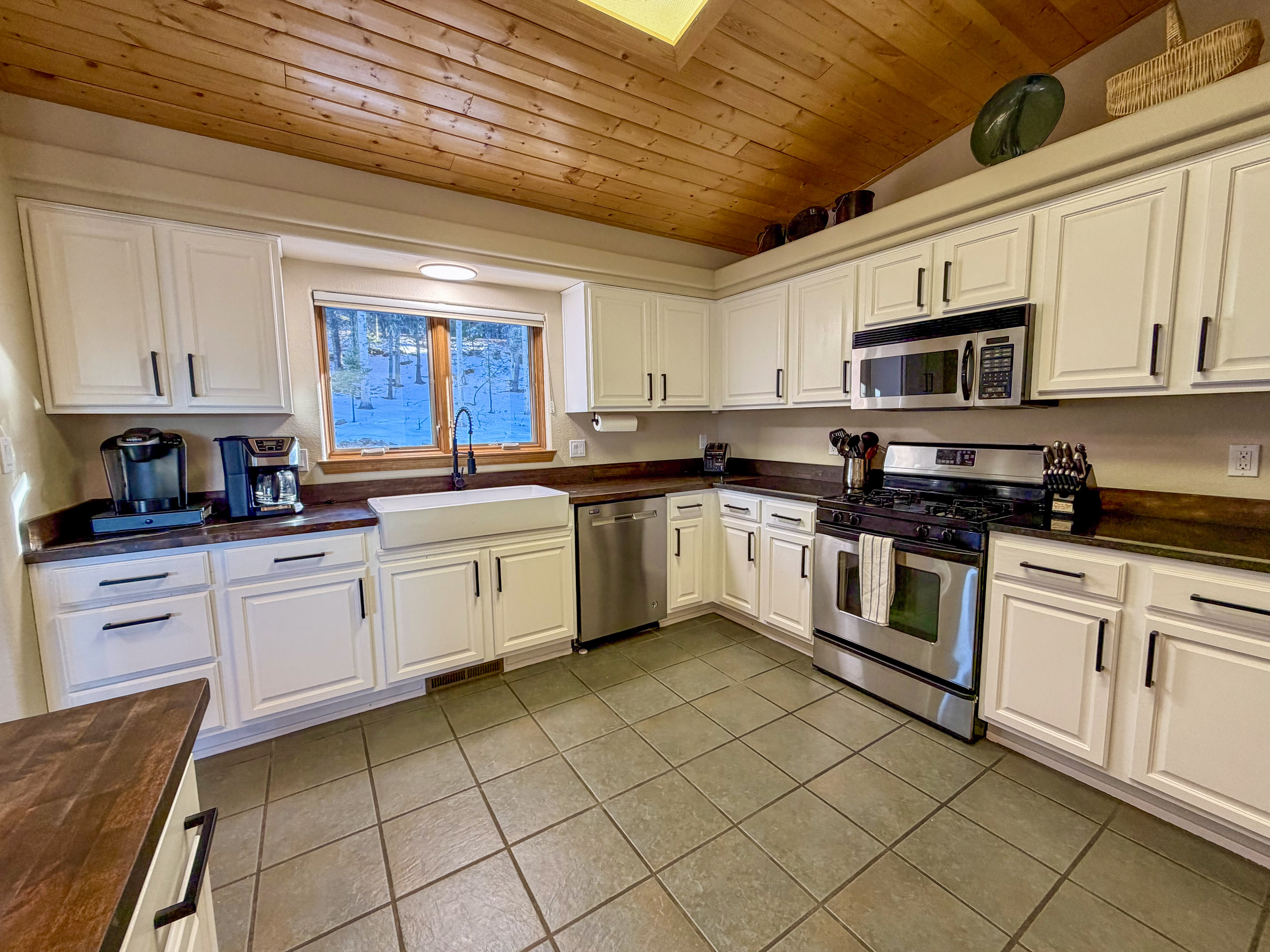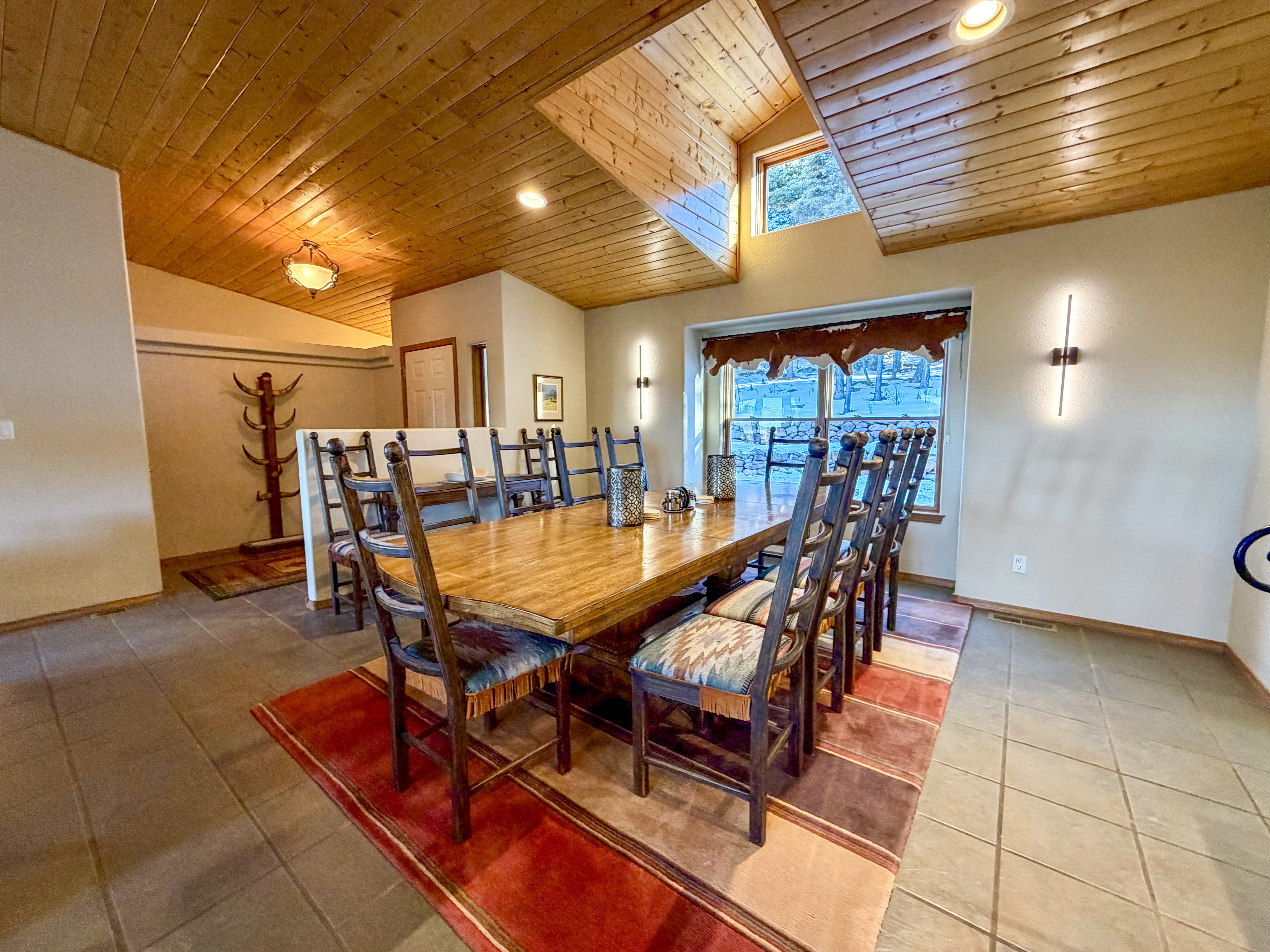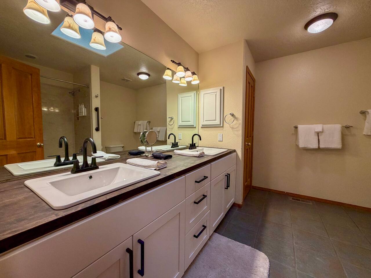 With 3,473 square feet of thoughtfully designed living space, Sierra Blanca Lodge is more than just a place to sleep—it’s your private mountain sanctuary. The two-story layout is specifically engineered for large groups, allowing for high-energy fun downstairs while maintaining a peaceful retreat upstairs. ✨ Upstairs: The Social Heart (Main Level) The top floor is bathed in natural light, featuring vaulted ceilings and floor-to-ceiling views of the alpine landscape. The Great Room: Gather around the cozy wood-burning fireplace for morning coffee or evening cocktails. The open-concept design ensures nobody is left out of the conversation. Chef’s Kitchen: Newly remodeled and fully equipped, this kitchen features modern appliances and generous counter space—perfect for prepping big family taco nights or holiday feasts. The Upper Deck: Step out from the living area onto the massive deck. It’s the ultimate spot for alfresco dining, grilling, or simply breathing in the crisp mountain air. Primary Suite: A secluded king-bed retreat with a private, newly remodeled ensuite bathroom. Queen Guest Rooms: Two additional queen bedrooms sit on the opposite side of the home, providing a quiet buffer for guests. They share a convenient, full-sized bathroom. 🎮 Downstairs: The Ultimate Hangout (Lower Level) This level is all about entertainment and maximizing sleep capacity without feeling crowded. The Game Room: This is where the memories are made. Challenge your group to a tournament on the full-sized pool table or go for a high score on the retro arcade games. It doubles as a second family room with plenty of space to lounge. The Bunk Rooms: Perfect for the kids or the young-at-heart, two bedrooms each feature two sets of bunks (8 beds total!). This level stays naturally cool and quiet. Full Bathrooms: Two additional full bathrooms serve this level, ensuring there is never a line for the shower in the morning. The Lower Deck: A second expansive outdoor space for even more room to spread out and enjoy the forest surroundings. 🏠 Extras for a Seamless Stay Laundry Room: Full-sized washer and dryer available for your convenience—perfect for drying out ski gear or freshening up hiking clothes. Privacy-First Layout: The "split" design means the primary suite and main living areas remain a sanctuary of peace while the game room excitement stays downstairs.