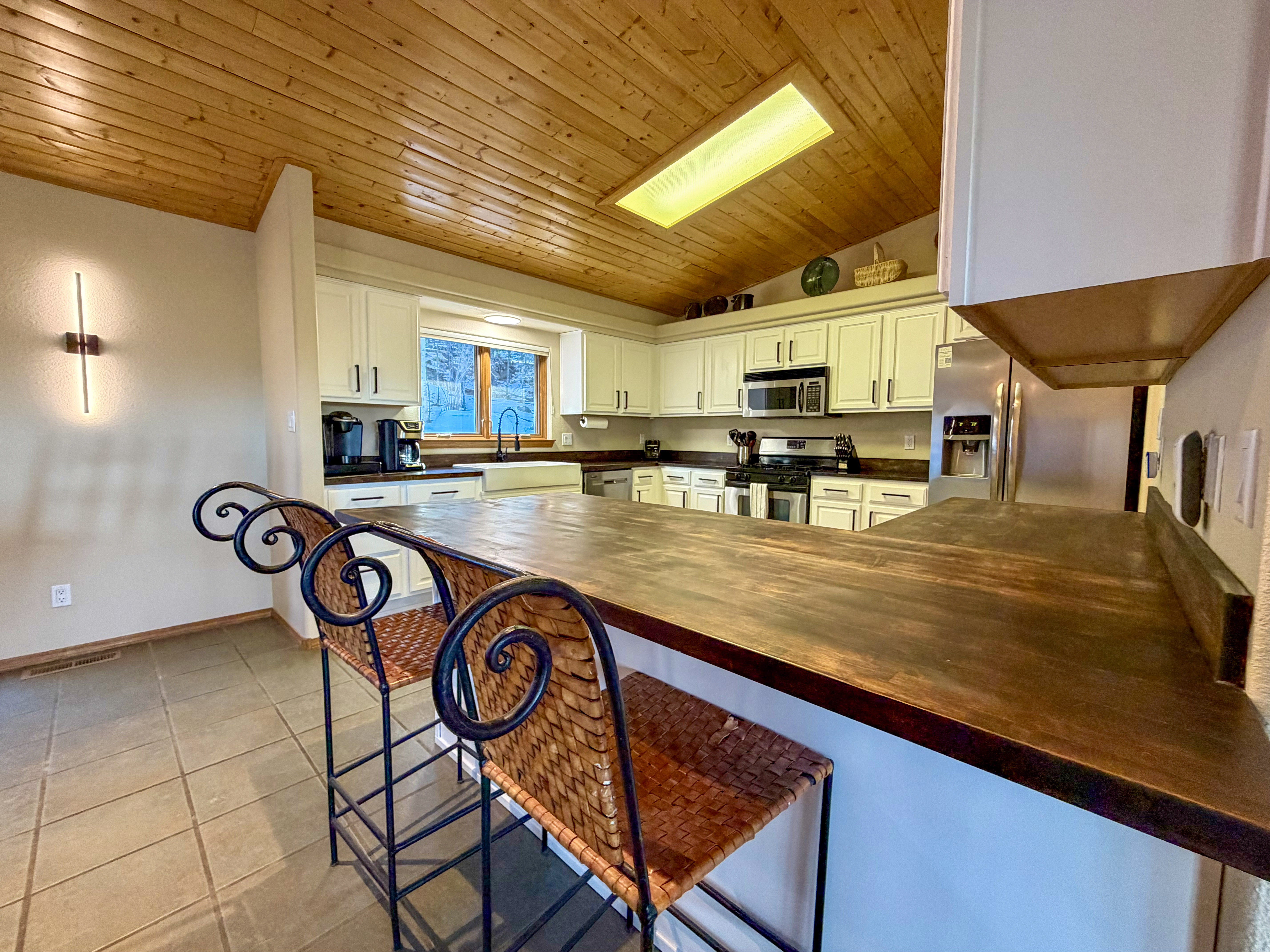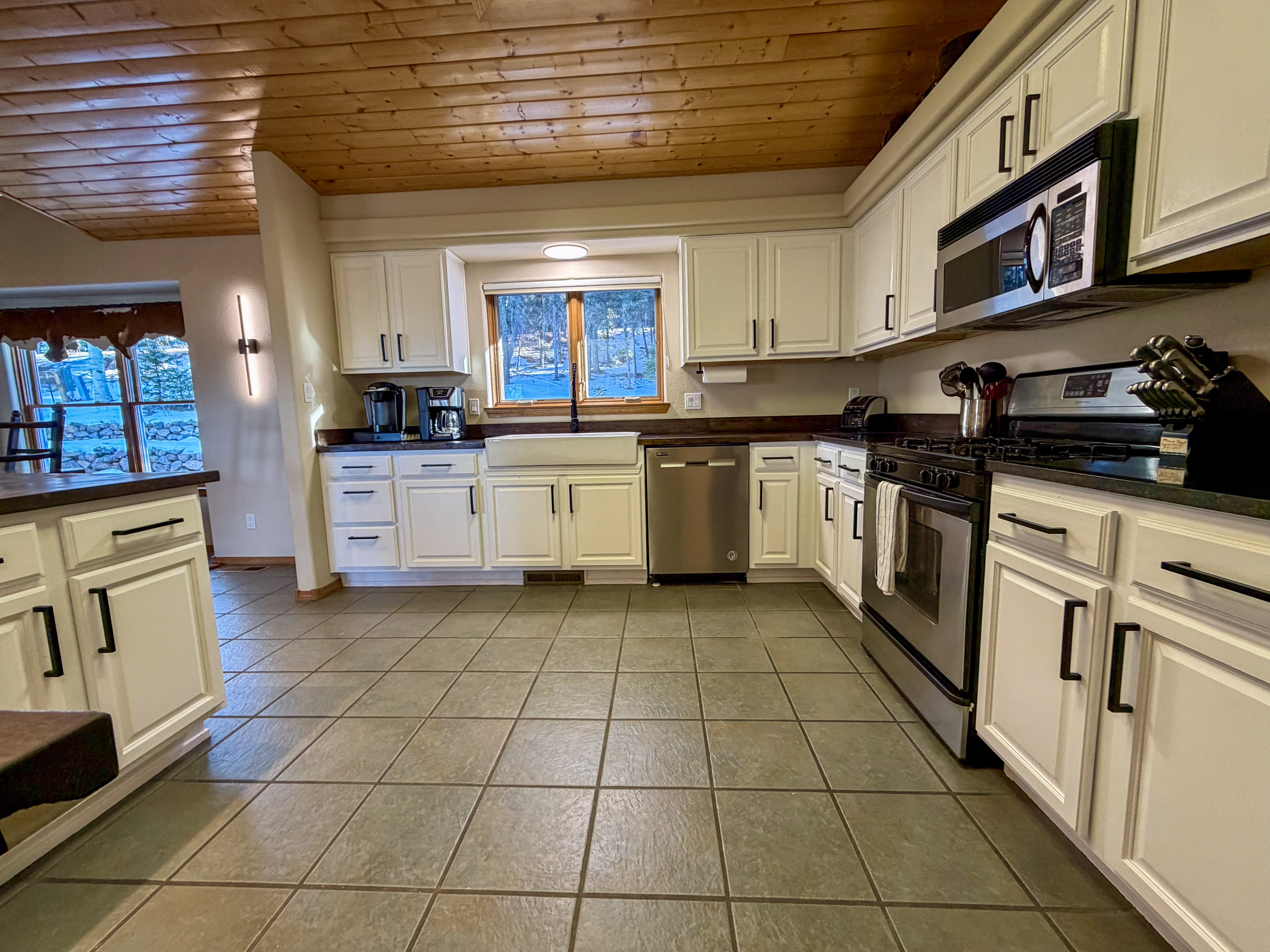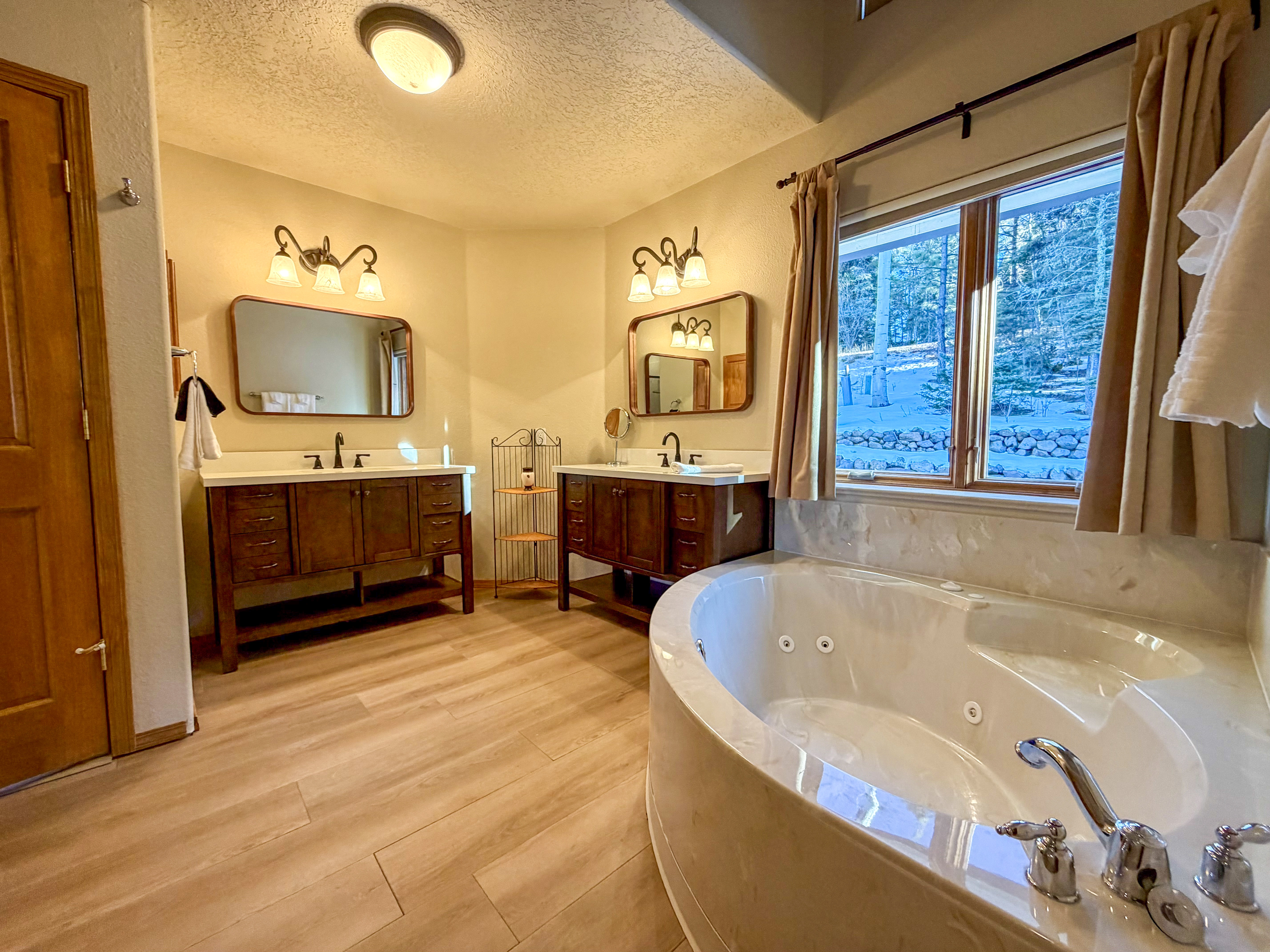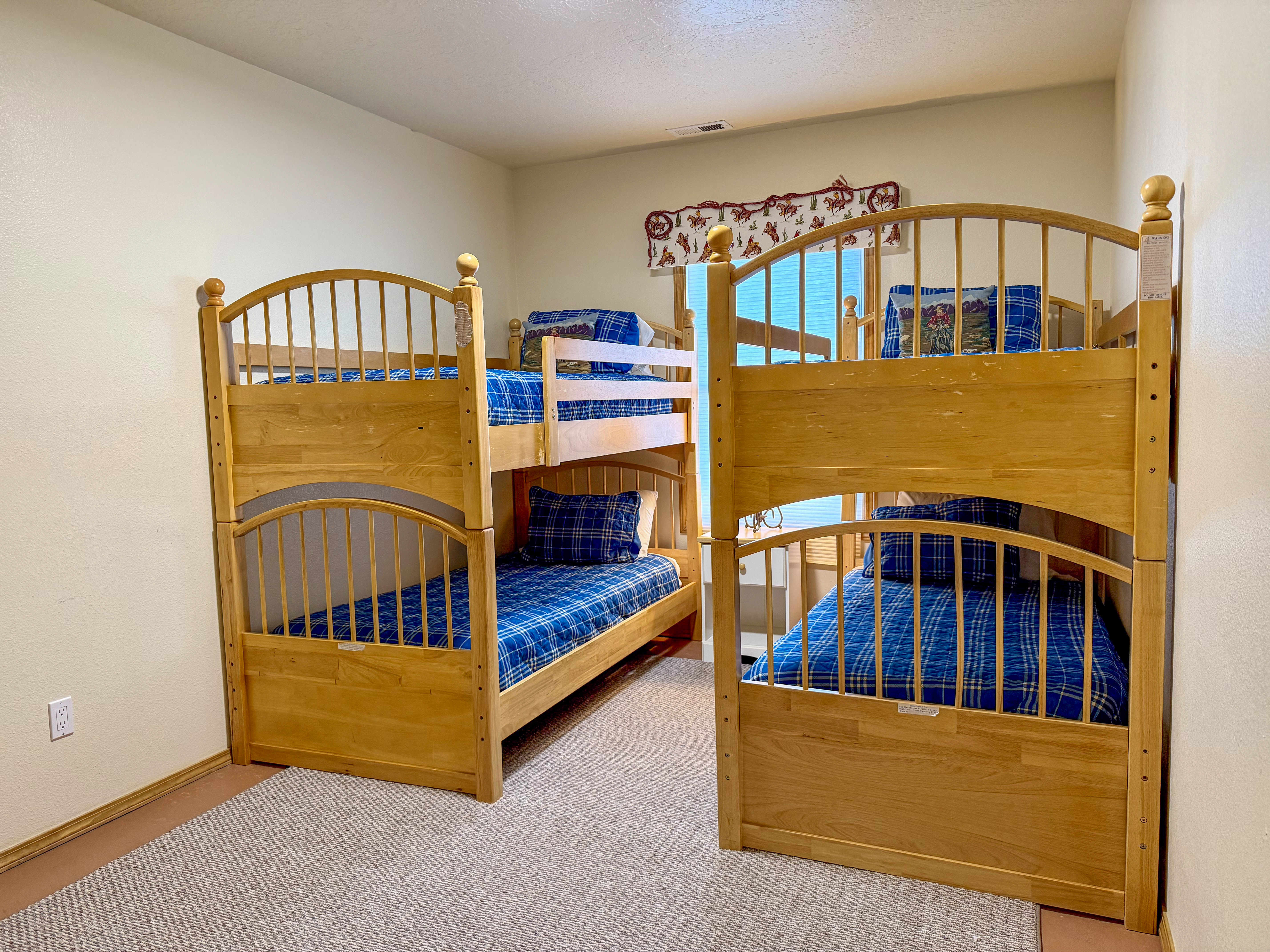 With 3,473 square feet of thoughtfully designed living space, Sierra Blanca Lodge is more than just a place to sleep—it’s your private mountain sanctuary. The two-story layout is specifically engineered for large groups, allowing for high-energy fun downstairs while maintaining a peaceful retreat upstairs. ✨ Upstairs: The Social Heart (Main Level) The top floor is bathed in natural light, featuring vaulted ceilings and floor-to-ceiling views of the alpine landscape. The Great Room: Gather around the cozy wood-burning fireplace for morning coffee or evening cocktails. The open-concept design ensures nobody is left out of the conversation. Chef’s Kitchen: Newly remodeled and fully equipped, this kitchen features modern appliances and generous counter space—perfect for prepping big family taco nights or holiday feasts. The Upper Deck: Step out from the living area onto the massive deck. It’s the ultimate spot for alfresco dining, grilling, or simply breathing in the crisp mountain air. Primary Suite: A secluded king-bed retreat with a private, newly remodeled ensuite bathroom. Queen Guest Rooms: Two additional queen bedrooms sit on the opposite side of the home, providing a quiet buffer for guests. They share a convenient, full-sized bathroom. 🎮 Downstairs: The Ultimate Hangout (Lower Level) This level is all about entertainment and maximizing sleep capacity without feeling crowded. The Game Room: This is where the memories are made. Challenge your group to a tournament on the full-sized pool table or go for a high score on the retro arcade games. It doubles as a second family room with plenty of space to lounge. The Bunk Rooms: Perfect for the kids or the young-at-heart, two bedrooms each feature two sets of bunks (8 beds total!). This level stays naturally cool and quiet. Full Bathrooms: Two additional full bathrooms serve this level, ensuring there is never a line for the shower in the morning. The Lower Deck: A second expansive outdoor space for even more room to spread out and enjoy the forest surroundings. 🏠 Extras for a Seamless Stay Laundry Room: Full-sized washer and dryer available for your convenience—perfect for drying out ski gear or freshening up hiking clothes. Privacy-First Layout: The "split" design means the primary suite and main living areas remain a sanctuary of peace while the game room excitement stays downstairs.